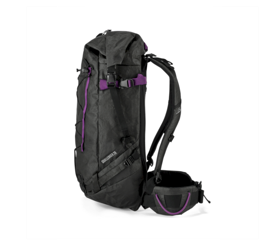 The versatile Challenger 28 Backpack is a go-to carry-all for mountaineering, alpine climbing and ski mountaineering. Made from rugged, tear-resistant Challenge Sailcloth Ultra fabric, this durable, lightweight pack is built to withstand ice, rock and harsh conditions. The practical roll-top tubular construction can increase capacity from 28 to 32 litres for more gear-intensive missions. A drawstring closure divides the main compartment into two sections for easy organisation, with both sides accessible via water-repellent zippers. And various removable external straps and cords allow you to transport ropes, skis, ice axes and helmets, so you can customise your setup whether you’re scaling icy walls or descending on fresh powder. The back panel comes with a structured, removable insert for extra support with heavier loads. Fully adjustable shoulder straps and a waist belt with detachable hip pads ensure optimal weight distribution for all-day comfort. For ambitious alpine adventures, choose the Challenger 28 Backpack.